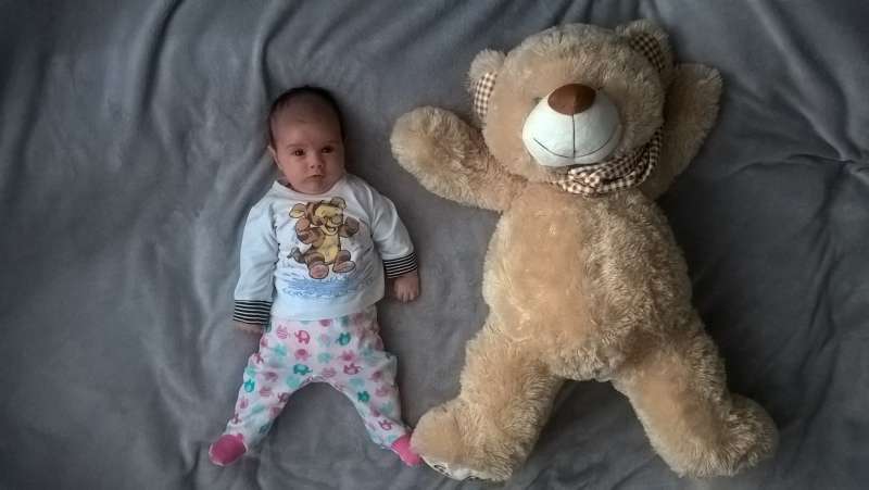Idę bo filkoland wstal. Dzis mierzenie Agaty z misiem, jak co miesiąc pierwszego. Wrzucę fotę!